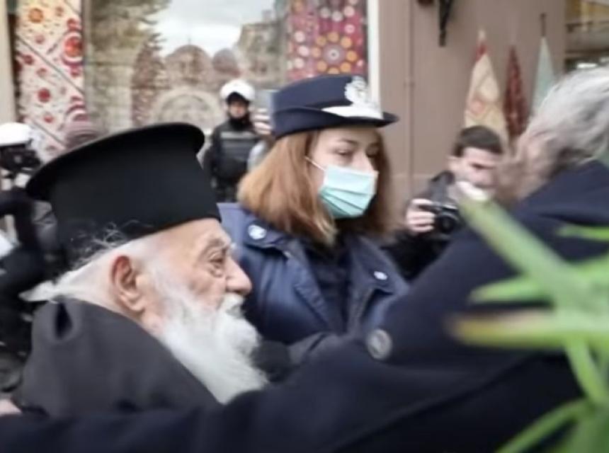 Na objavljenom snimku se vidi kako svećenik uznemireno viče na grčkom otimajući se policiji koja ga odvodi. Vikao je dovoljno glasno da ga papa čuje, kazali su svjedoci. Dok su ga odvodili stari svećenik je u jednom trenutku pao na pod, a policajci su ga podigli.