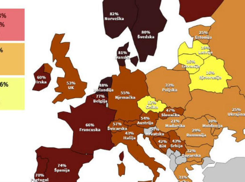 S druge strane, u gotovo svim državama zapadne Evrope, više od polovice ispitanih kaže kako bi učinili isto.