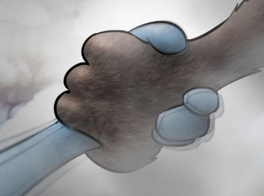 Sarajevski vuk pridržava zagrebačku vjevericu u teškom trenutku, a sarajevski autor Midhat Kapetanović šalje poruku: