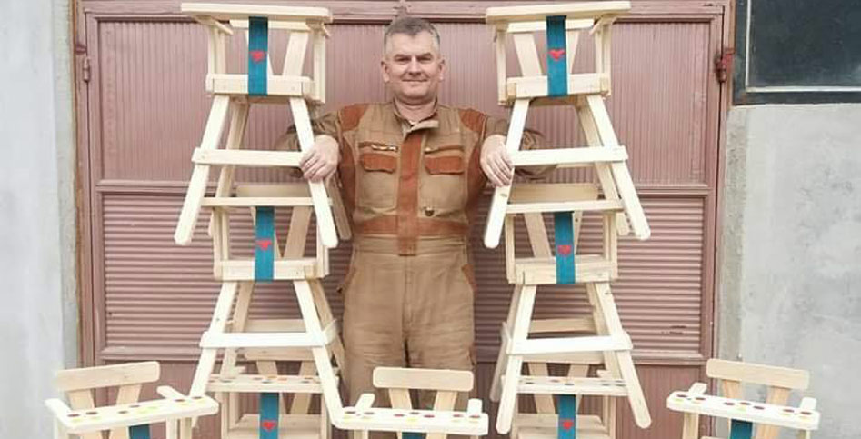Milorad Jurković u cijelom regionu poznat je kao stolar Mile 2015. objavio je na svom Facebook profilu da je napravio stolicu za hranjenje beba i da je poklanja onome kome je potrebna.