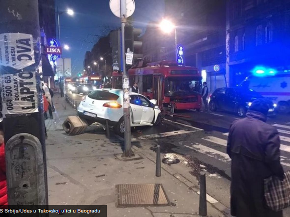 U Takovskoj ulici u Beogradu nešto poslije 17 sati došlo je do stravičnog sudara automobila i trolejbusa.