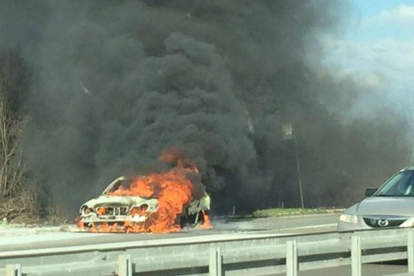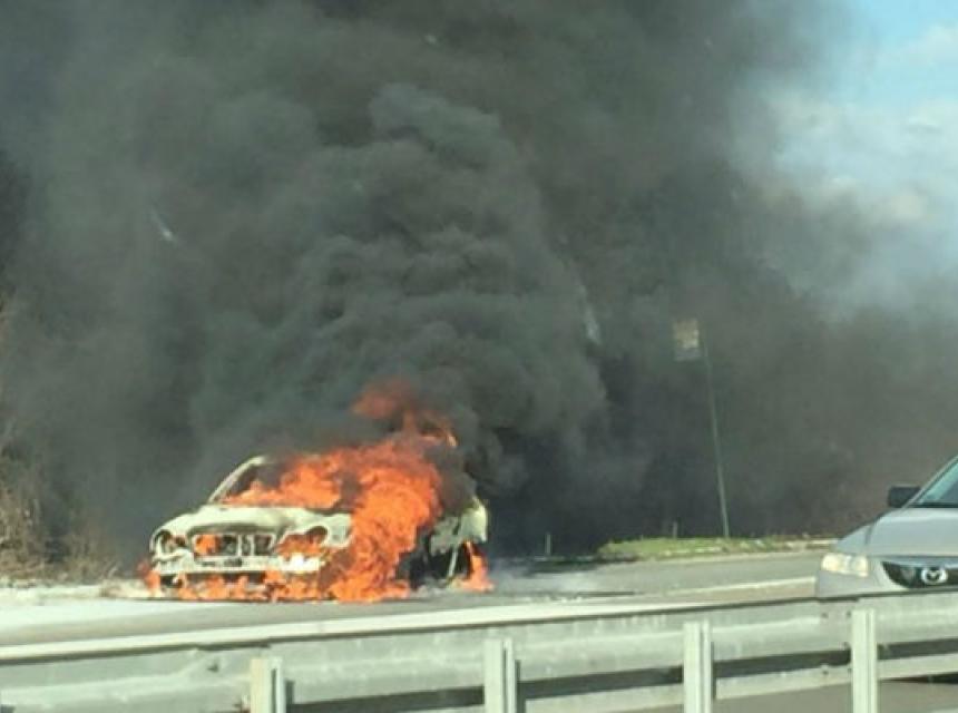 Na autoputu, na ulazu u Beograd, u smjeru od Šida, došlo je do nesreće u kojoj je u potpunosti izgorio automobil.