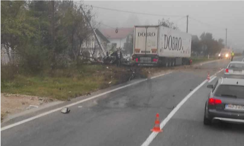 Vozač putničkog motornog vozila Passat inicijala H.H. smrtno stradao,, piše isti izvor.