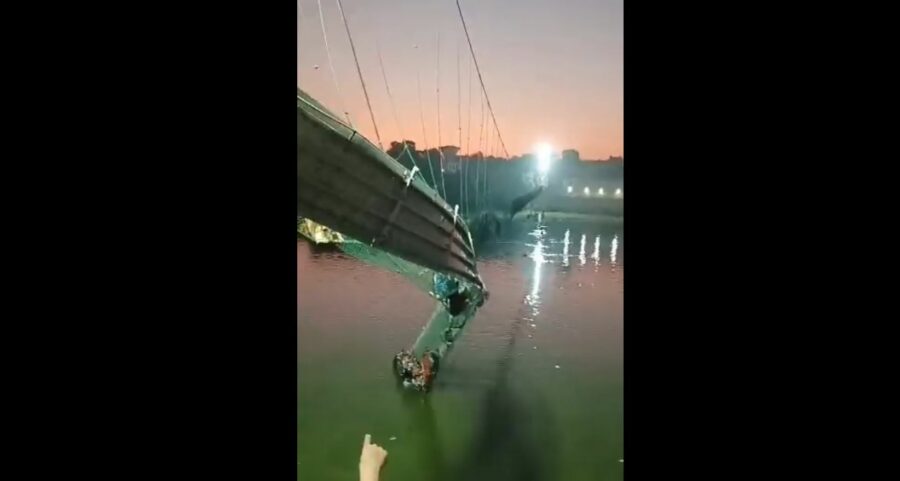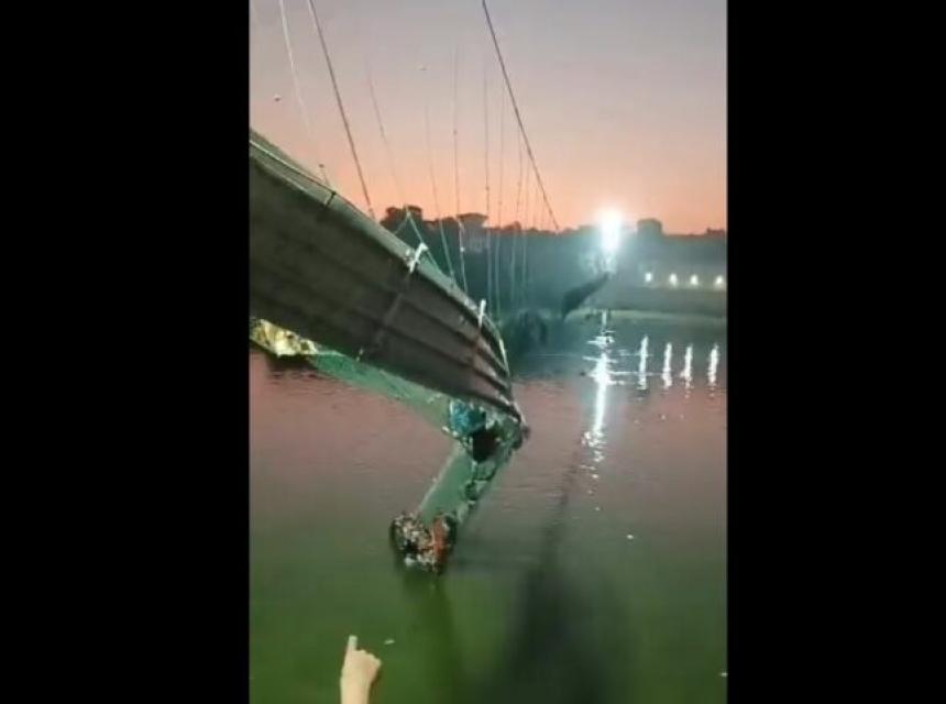 Lokalne televizije izvijestile je da je na mostu u trenutku rušenja bilo preko 400 ljudi, a da su pali u rijeku Makču u gradu Morbi.