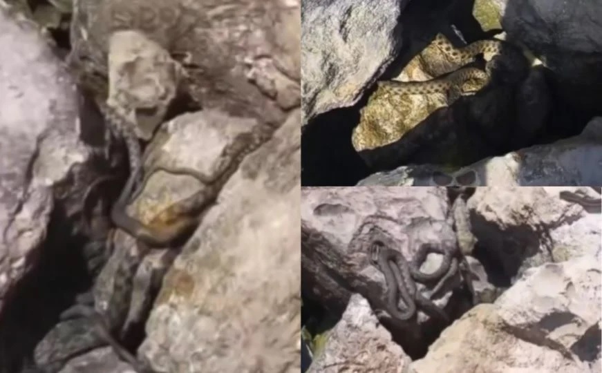 Riječ je o zmijama ribaricama (Natrix tessellata), koje su poznate po tome da žive ili u vodi ili blizu nje. Zanimljivo je da, ako se nađe u opasnosti, ova zmija se ponašao kao i bjelouška – pravi se mrtva i počne smrdjeti.
