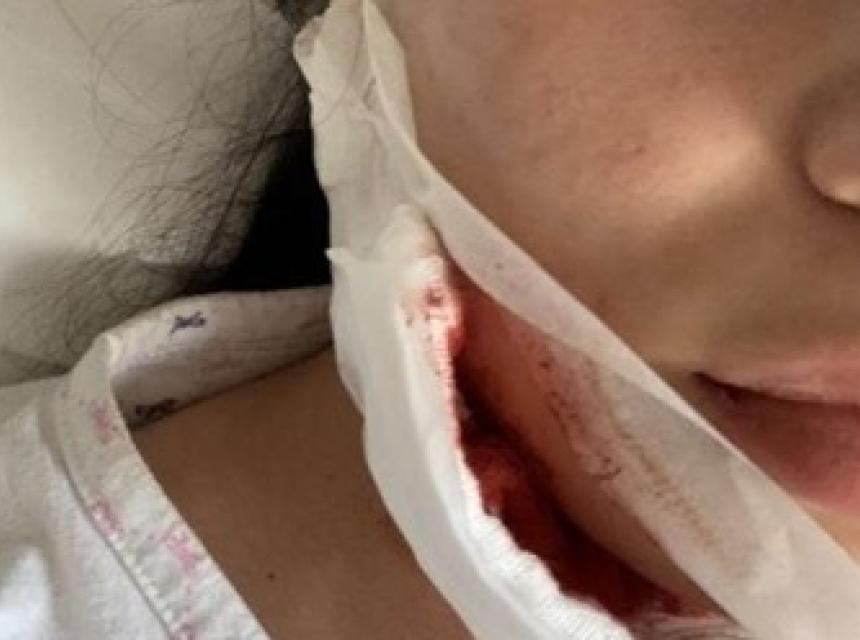 Prema njenim riječima, u trenutku kada je izlazila iz objekta, Rajković je "zgrabio veliku čašu i pogodio je u glavu".