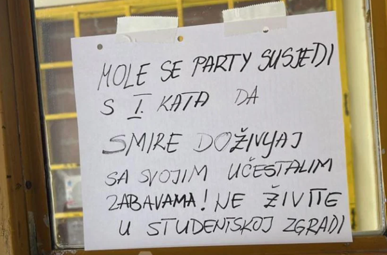 "Mole se party susjedi s prvog kata da smire doživljaj sa svojim učestalim zabavama! Ne živite u studentskoj zgradi”, poručili su stanari svojim glasnim susjedima.