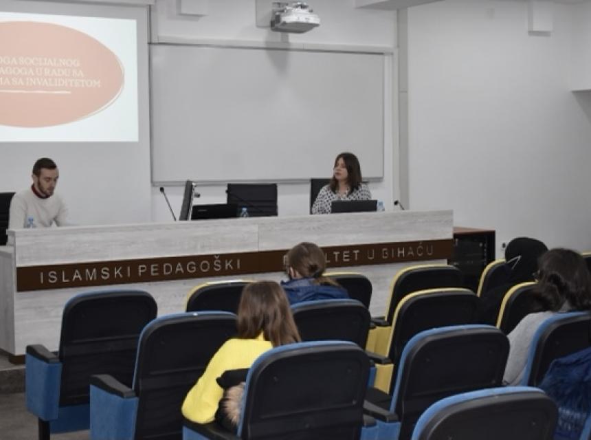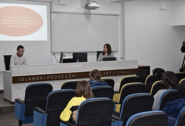 Apsolventi Odsjeka za socijalnu pedagogiju i duhovnu skrb: Veljačić Dinela, Salih Liđan i Nadarević Amela zajedno sa voditeljicom Odsjeka Smailom Balić Rahmanović održali su predavanje i radionice studentima prve godine povodom Međunarodnog dana osoba sa invaliditetom. Prisutnima se obratila i prof.dr. Nusreta Kepeš koja je istakla važnost obilježavanja ovakvih datuma kao i važnost stručnjaka socijalnog pedagoga i duhovnog skrbnika u široj zajednici.