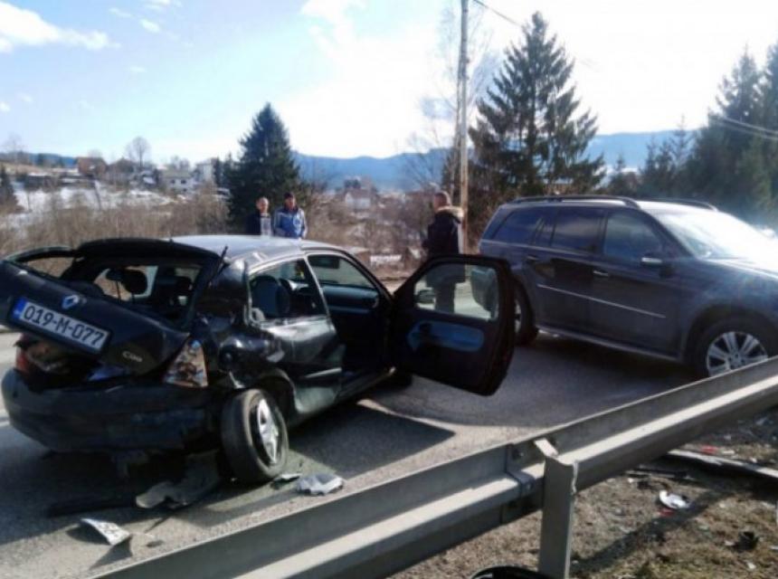 U nesreći koja se dogodila na raskrsnici kod restorana "Dva goluba" učestvovali su Renault i Mercedes, na kojima je pričinjena materijalna šteta.