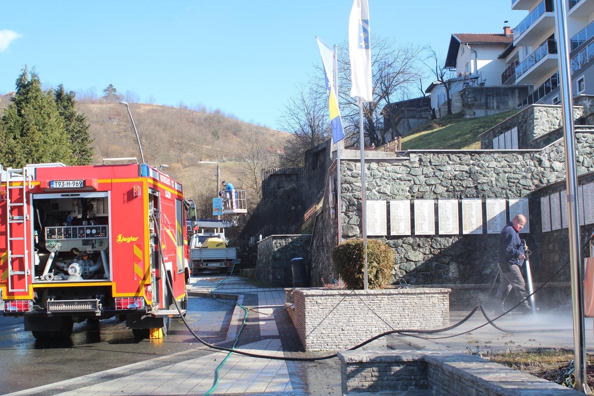 Danas su toplo vrijeme i sunce u Cazinu iskoristili vatrogasci i komunalci koji su ‘udruženim snagama’ izvršili uređenje Šehidskog obilježja u Cazinu.