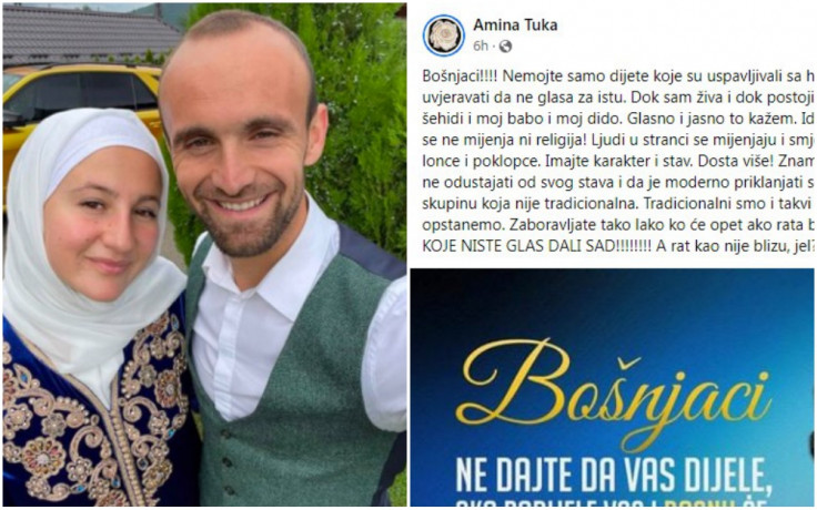 Amina Tuka, supruga bosanskohercegovačkog atletičara Amela Tuke, oglasila se na Facebooku dva dana nakon Općih izbora na kojima su građani birali članove Predsjedništva BiH, kao i predstavnike u Državnom i Federalnom parlamentu, Narodnoj skupštini RS, kao i kantonalnim skupštinama.