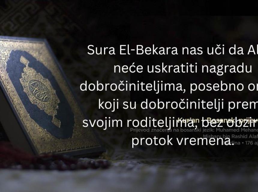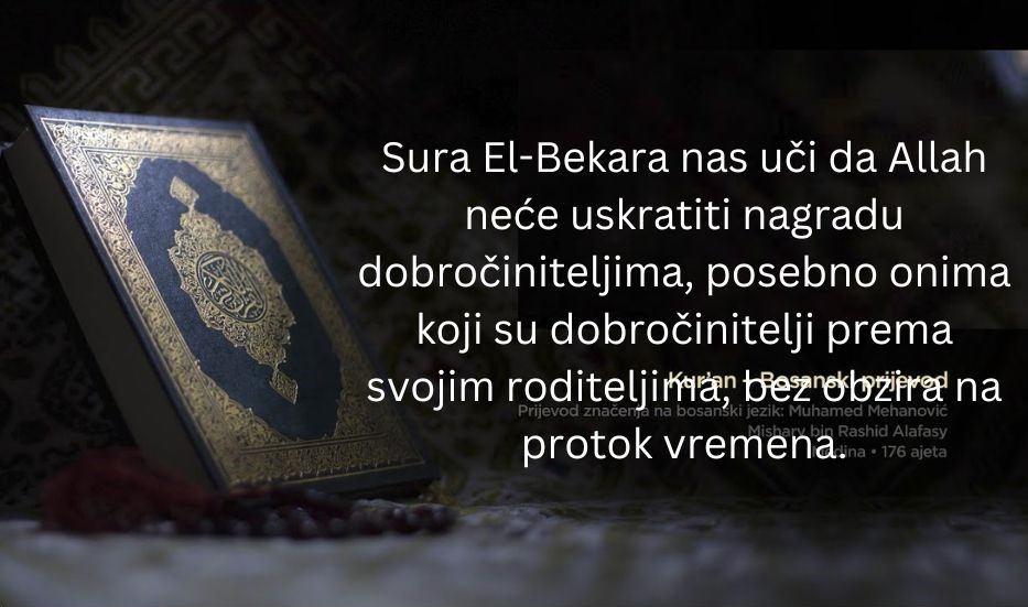 Sura El-Bekara nas uči da Allah neće uskratiti nagradu dobročiniteljima, posebno onima koji su dobročinitelji prema svojim roditeljima, bez obzira na protok vremena.