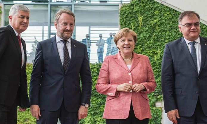 Predsjedavajući Predsjedništva BiH Bakir Izetbegović i članovi Predsjedništva Mladen Ivanić i Dragan Čović danas će se u Berlinu sastati s njemačkom kancelarkom Angelom Merkel, na njen poziv.
