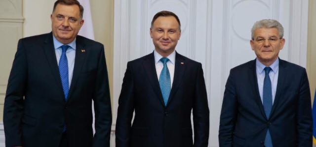 Predsjednik Poljske Andrzej Duda, koji boravi u posjeti Bosni i Hercegovini, u ponedjeljak se u Sarajevu sastao s članovima Predsjedništva BiH, Miloradom Dodikom i Šefikom Džaferovićem.