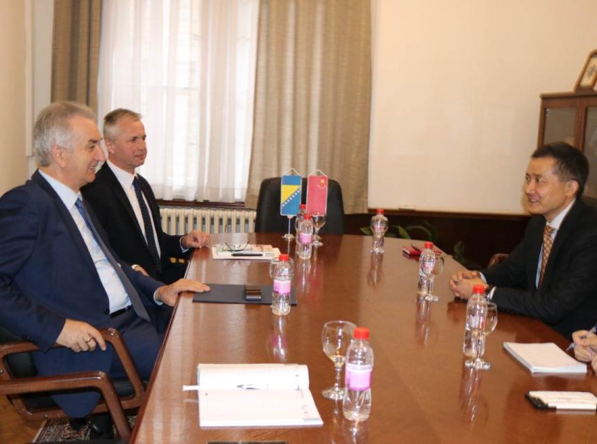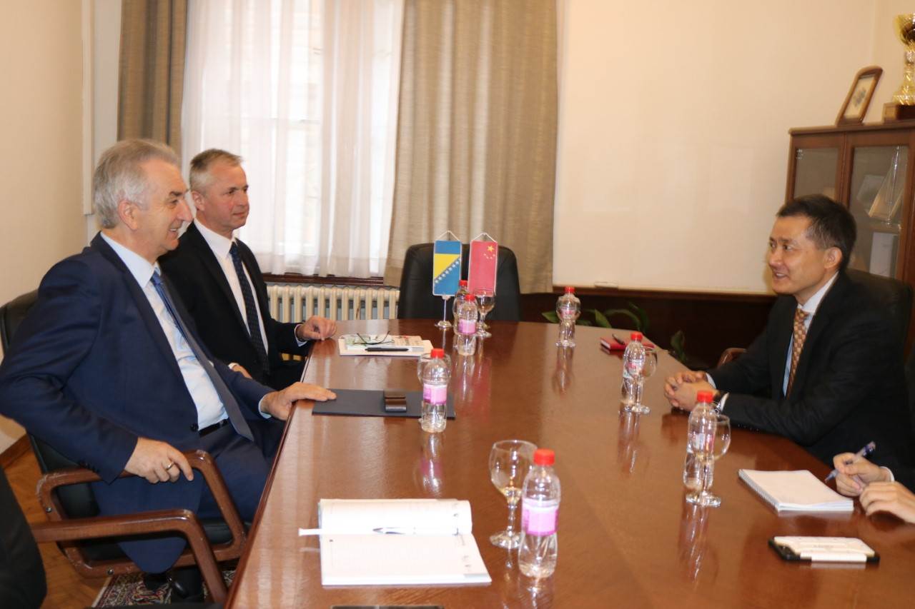 Ministar ekonomskih odnosa i vanjske trgovine Bosne i Hercegovine, Mirko Šarović, susreo se danas sa ambasadorom Kine u Bosni i Hercegovini, Ji Pingom. Šarović i Ping su razgovarali o trgovinskoj razmjeni između dvije zemlje i infrastrukturnim projektima koji se realizuju u Bosni i Hercegovini.