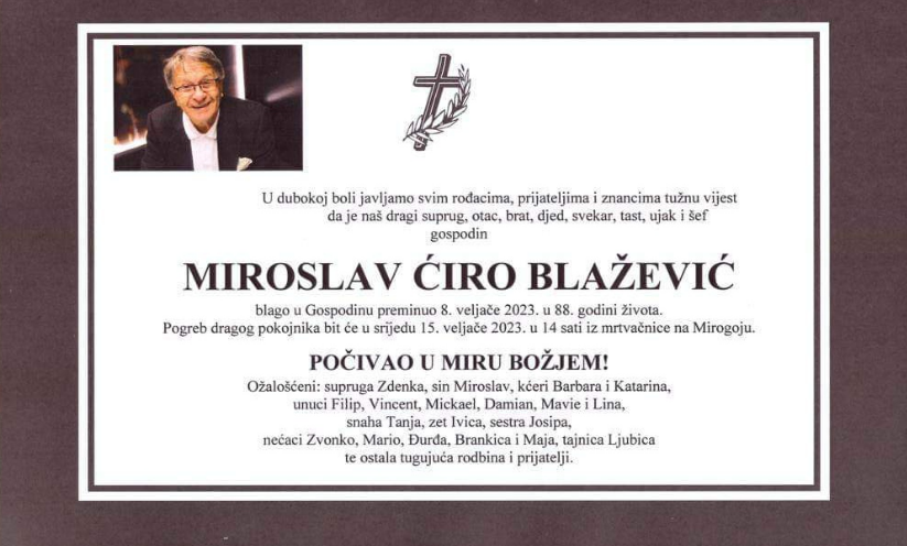 Protekle sedmice preminuo je legendarni trener i bivši selektor bh. reprezentacije Miroslav Ćiro Blažević.