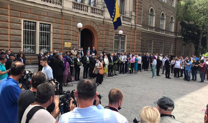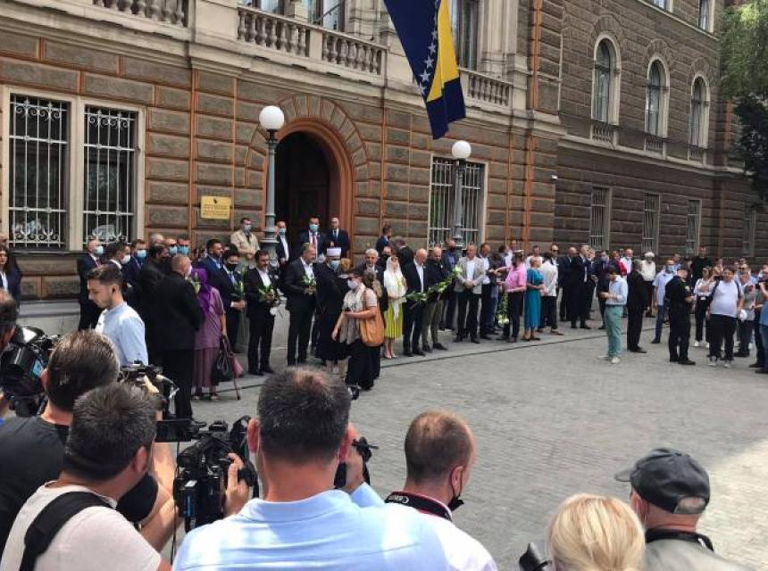 Ispred Predsjedništva BiH okupio se veliki broj građana, ali i zvaničnika. Osim članova Predsjedništva Šefika Džaferovića i Željka Komšića, ispraćaju je prisustvovao lider SDA Bakir Izetbegović, lider Naroda i pravde, Elmedin Dino Konaković, ali i Dritan Abazović.