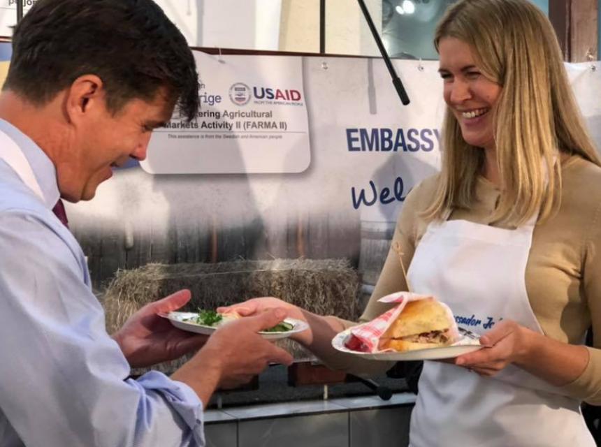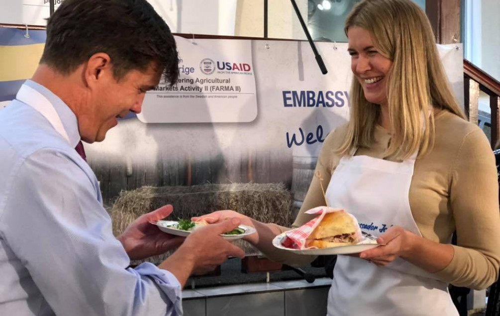 - Domaća piletina, uzgojena u BiH, a pripremljena na teksaški način? Ili izvrsni švedski recept? Oboje su bili veoma ukusni! Jučer smo se istinski zabavili na FARMA danu u Švedskoj ambasadi, gdje se ambasador Nelson pridružio ambasadorici Stromkvist (Johanna Stromquist) u pripremanju tradicionalnih jela sa svježim sastojcima koje su proizveli lokalni poljoprivrednici, korisnici SIDA/USAID BiH FARMA II.