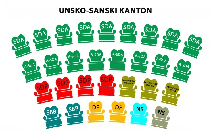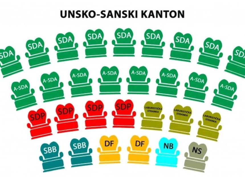Tako u USK od 30 poslanika SDA ima devet. S druge strane, A-SDA i SDP imaju 12 poslanika, što je uz glasove SBB-a, Nezavisnog bloka i Naše stranke većina od 16 poslanika. Ukoliko bi im se eventualno pridružila i dva poslanika DF-a, što još nije potvrđeno, to bi bila komotna većina od 18 poslanika.