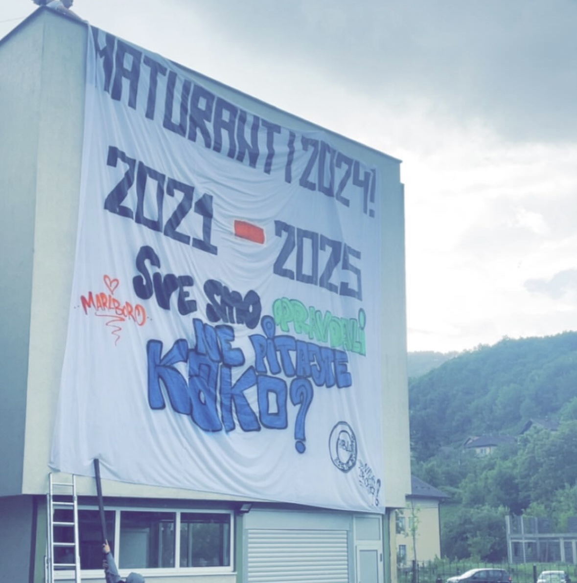 Kao i svake godine, posljednji školski dani ispunjeni su emocijama, muzikom, porukama, transparentima i mladalačkom energijom, a ovaj natpis će zasigurno ostati upamćen kao jedan od najoriginalnijih ovogodišnjih momenata.