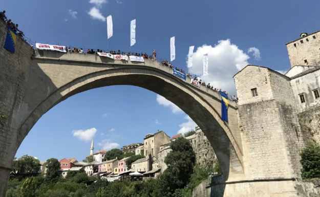 Brojni gosti ispunili su plato ispod Starog mosta u iščekivanju 452. tradicionalnih skokova sa Starog mosta. Takmičenje organizira Klub skakača u vodu "Mostari".