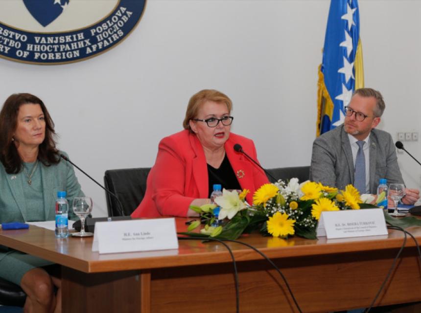 Turković je na konferenciji za novinare nakon susreta istakla kako je današnja posjeta švedskih ministara fokusirana je na jačanje saradnje između dvije zemlje.