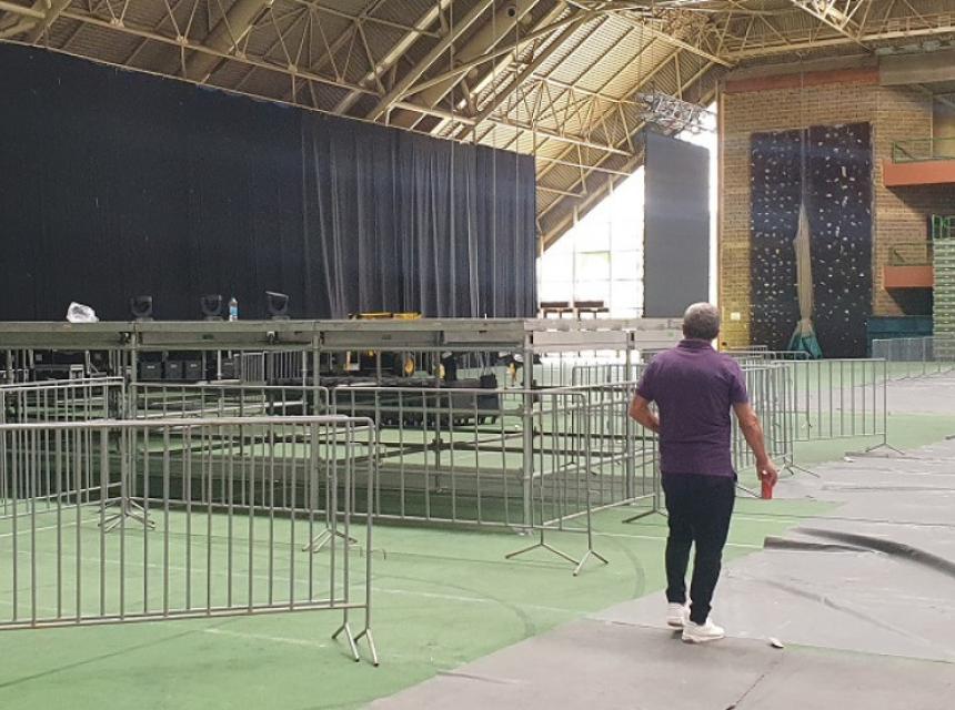 U dvorani Zetra se postavlja bina i dovršavaju se posljednje pripreme za muzički festival. Broji se sitno do velikog spektakla.
