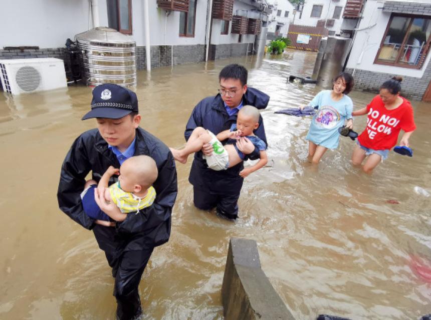 Medijski izvještaji prikazuju spasioce kako iz poplavljenog područja izvlače ljude iz njihovih domova, a ministarstvo za hitne situacije objavilo je da je u Šangaju i pokrajinama Džejijang i Jiangcu milion ljudi evakuirano.
