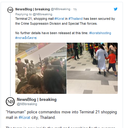 Portparol tajlandskog ministarstva odbrane izjavio je da su pripadnici snaga sigurnosti upali u tržni centar kako bi omogućili evakuaciju ljudi koji su se zatekli u njemu u vrijeme napada.