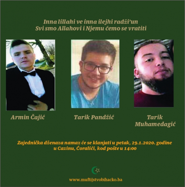 Iako su smrt i rastanak s nama dragim osobama sastavni dio ovodunjalučkih iskušenja, iznenadna smrt mladih ljudi u nama izazove dodatnu tugu i bol te osjećaj nenadoknadivog gubitka. Vijest o smrti trojice mladih ljudi u saobraćajnoj nesreći u Cazinu sve nas je rastužila i potresla.