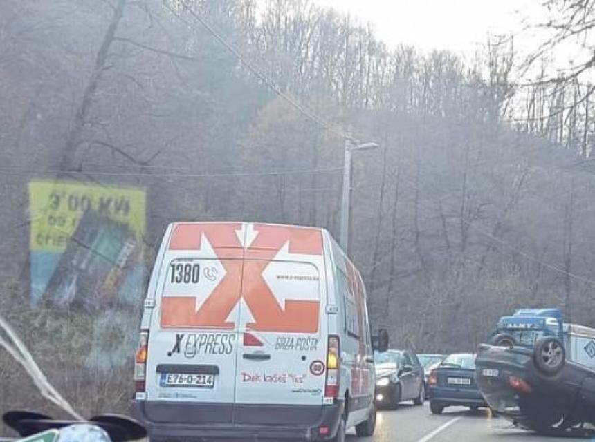 Uviđaj je još uvijek u toku, a kako se može vidjeti sa fotografije automobil je završio na krovu.