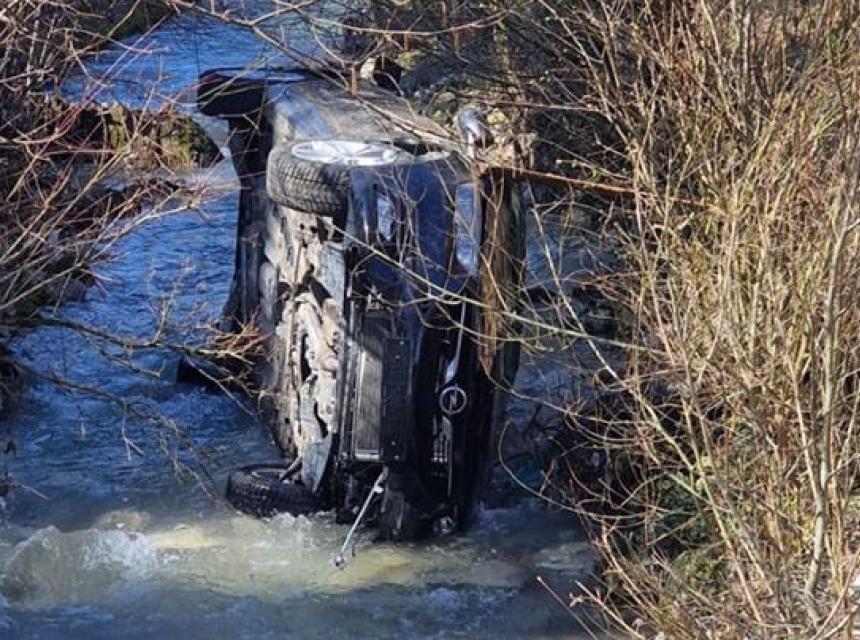 Kao što se vidi i na fotografiji, automobil je bio prevrnut na bok u rijeci Poričnici.