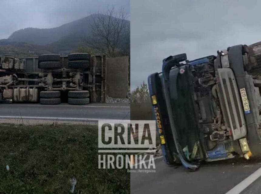 Saobraćaj na ovoj dionici puta je obustavljen a čeka se završetak policijskog uviđaja kako bi se kamion mogao skloniti sa magistralnog puta.