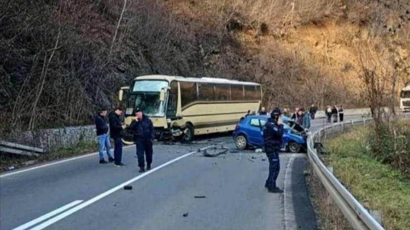 Vozač putničkog automobila je teško povrijeđen. Prema nepotvrđenim informacijama, vozač automobila je prešao na lijevu stranu puta i udario u autobus, navoe je izvor Blica.