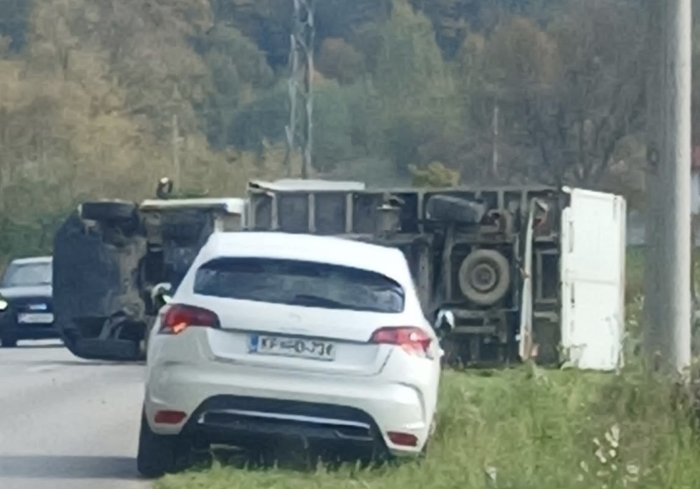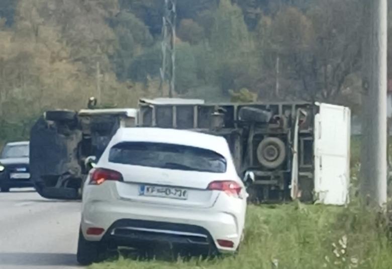 U cazinskom naselju Rajak danas se dogodila teška saobraćajna nesreća u kojoj su učestvovali putnički automobil marke BMW i kamion, koji se nakon sudara prevrnuo pored puta.