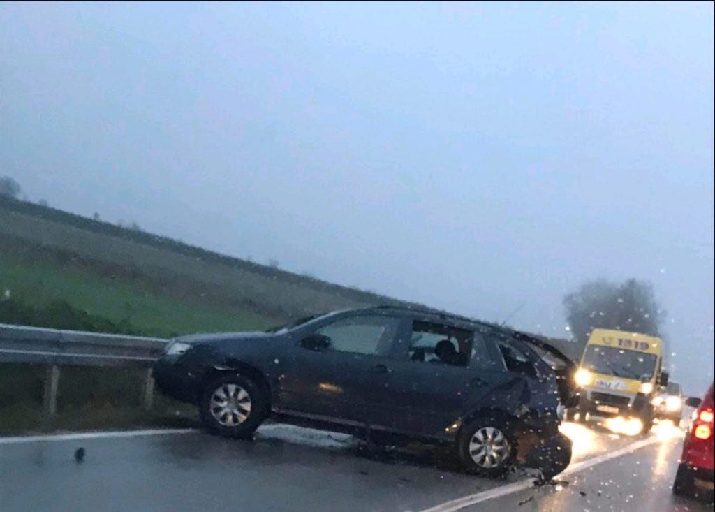 U nesreći su učestvovala dva motorna vozila i pričinjena je velika materijalna šteta.