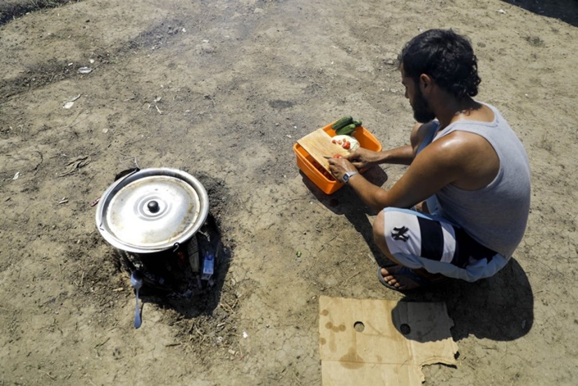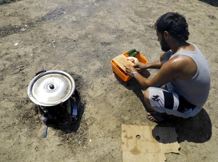 Gotovo je nemoguće i zamisliti da neko boravi u kampu mjesecima. U dijelu kampa Sirijci pripremaju ručak. Naložili su vatri i spremaju topli obrok.