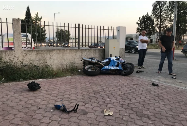 Incident se desio oko 19:30 kad je motociklista udario prvo u vozilo Citroen, da bi potom odletio u dvorište obližnjeg prodajnog objekta.