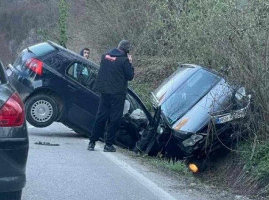 Usljed jakog udara jedno od vozila je sletjelo s puta.