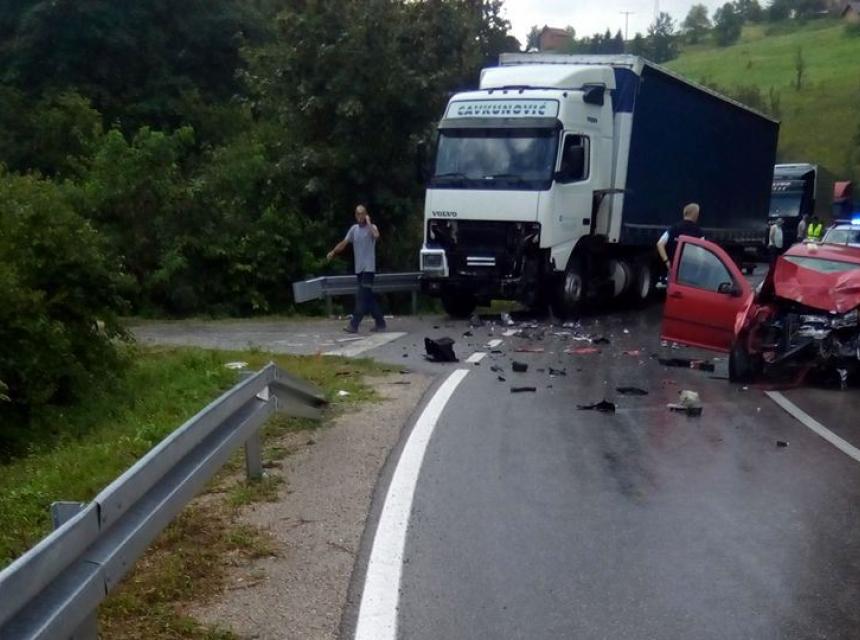 Danas je magistralnom putu M4.2 Ćoralići - Skokovi zabilježen težak udes u kojem su sudjelovali teretni kamion i putnički automobil.