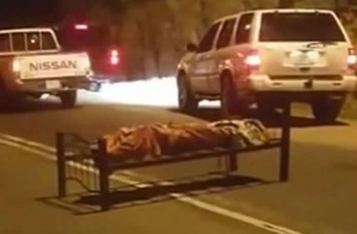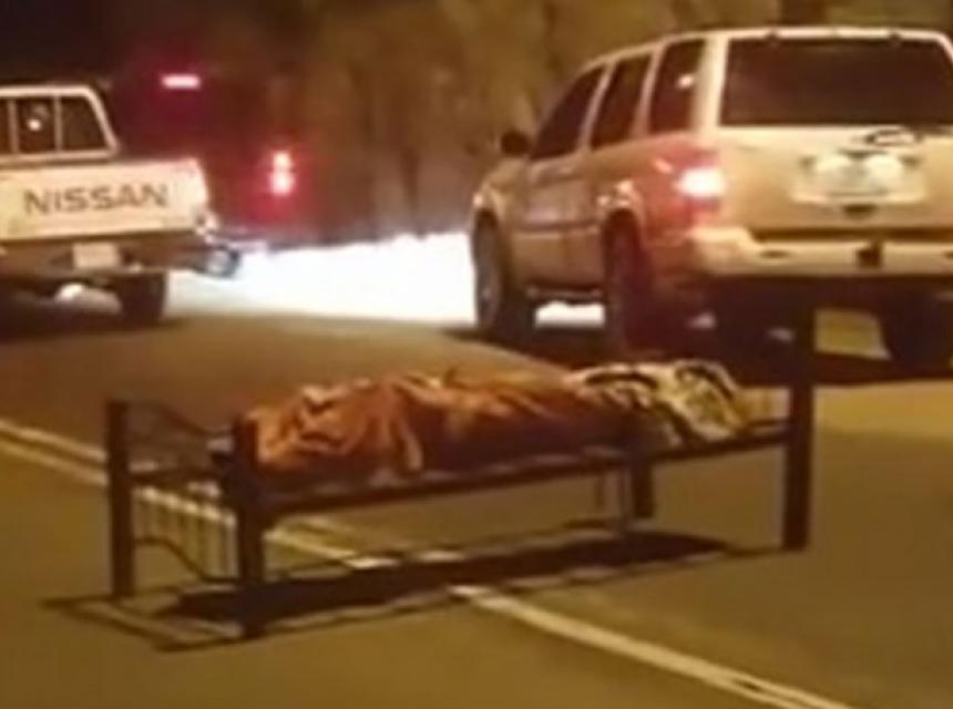 Tijelo je bilo obmotano ćebetom i vezano konopcem za metalni krevet bez dušeka koji je ostavljen na sredini puta, između dvije trake.