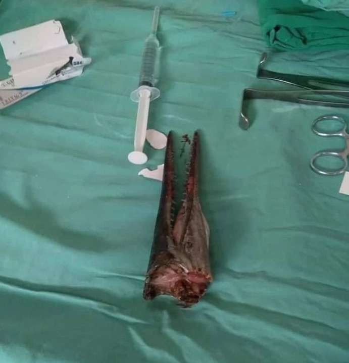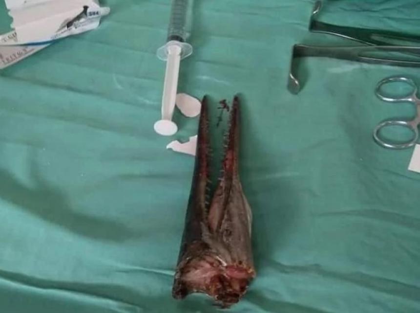 Tindejdžera iz Indonezije je riba igličarka probola kroz vrat dok je bio na čamcu.