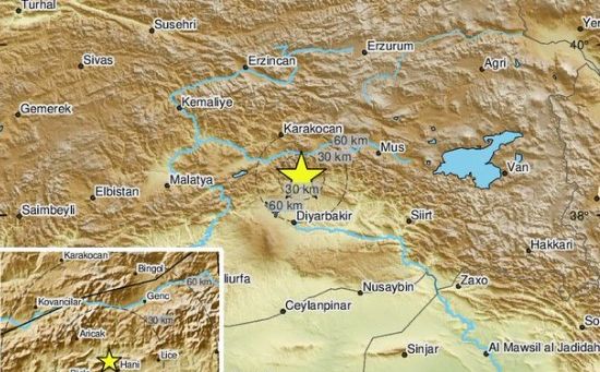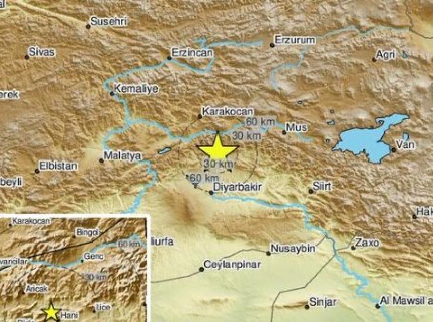 Epicentar je bio 8 kilometara sjeverozapadno od Hania u provinciji Diyarbakir.