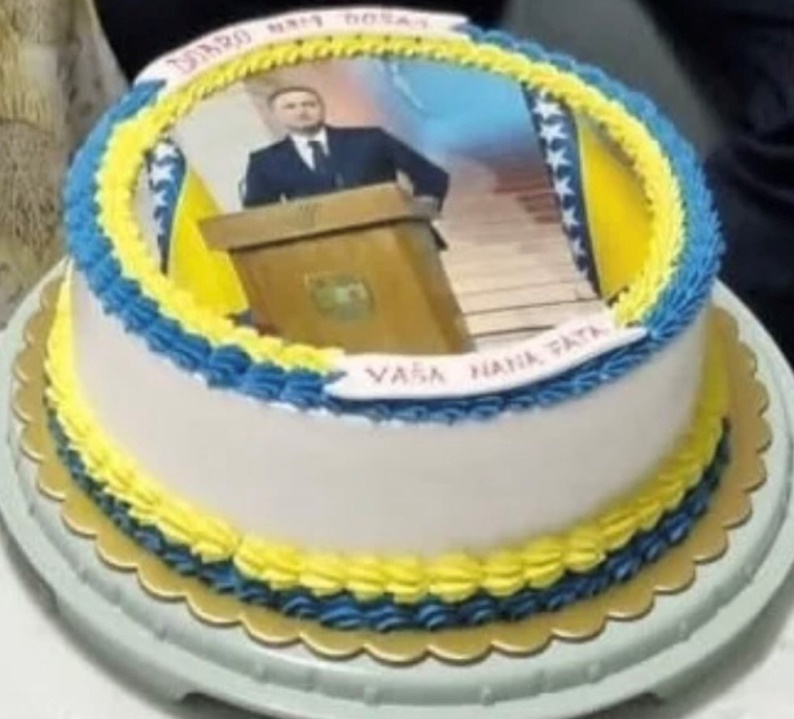 ''Interesantno, na stolu ispred nane Fate i njenih gostiju, pored brojnih slatkiša i sokova, bila je i torta sa likom novog člana Predsjedništva BiH koji stoji za govornicom. Na torti je pisalo 'Dobro nam došao. Vaša nana Fata'", objavila je Bećirovićeva služba za medije. Prvo što vam pada na pamet kome normalnom može pasti na pamet da objavite fotografiju torte sa vlastitim likom, pa se onda sjetite da bi to u regionu možda jedini uradio Aleksandar Vučić, ali on bi natjerao Pink da to oni umjesto njega urade. Zaista, posjeta nani Fati Orlović je za svaku pohvalu, ali na ovaj način koristiti je u politikantske svhre mogu samo politički narcisi kojima je vlastiti lik važniji od bilo kakvog obraza ili časti.