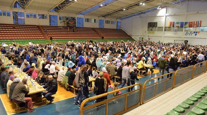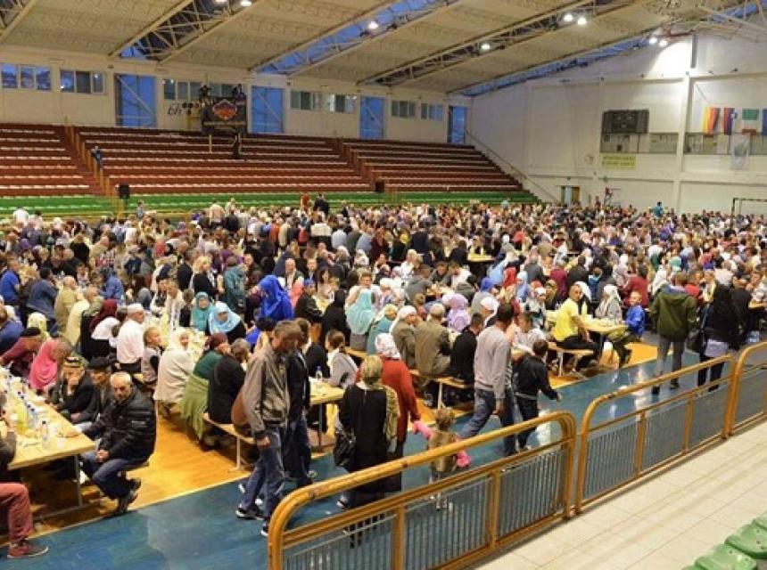 Jedan od zajedničkih iftara koji se tokom Mubarek mjeseca Ramazana organizuju u svim džematima na području grada Cazina, upriličen je sinoć u Sportskoj dvorani.