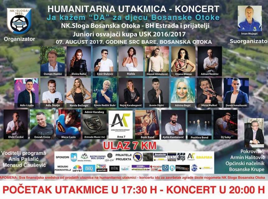Humanitarna utakmica i koncert pod nazivom “Ja kažem DA za djecu Bosanske Otoke” održat će se i ove godine, i to u ponedjeljak, 7. augusta, u Bosanskoj Otoci.