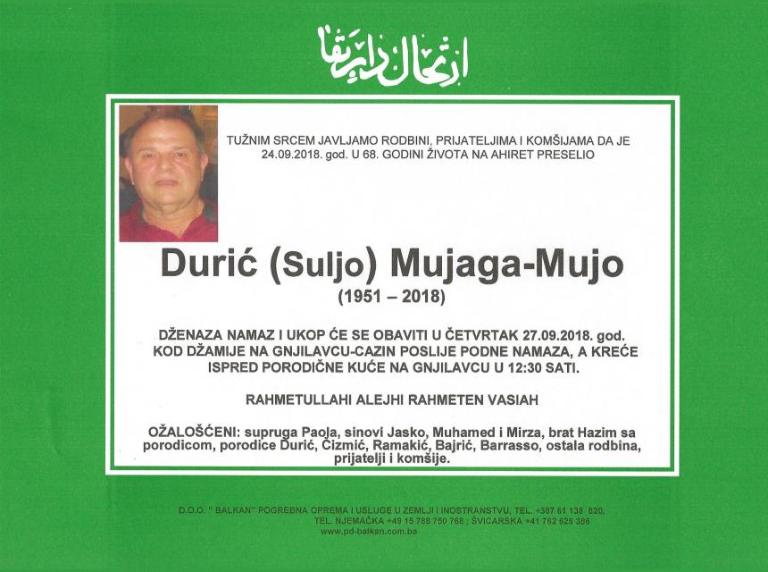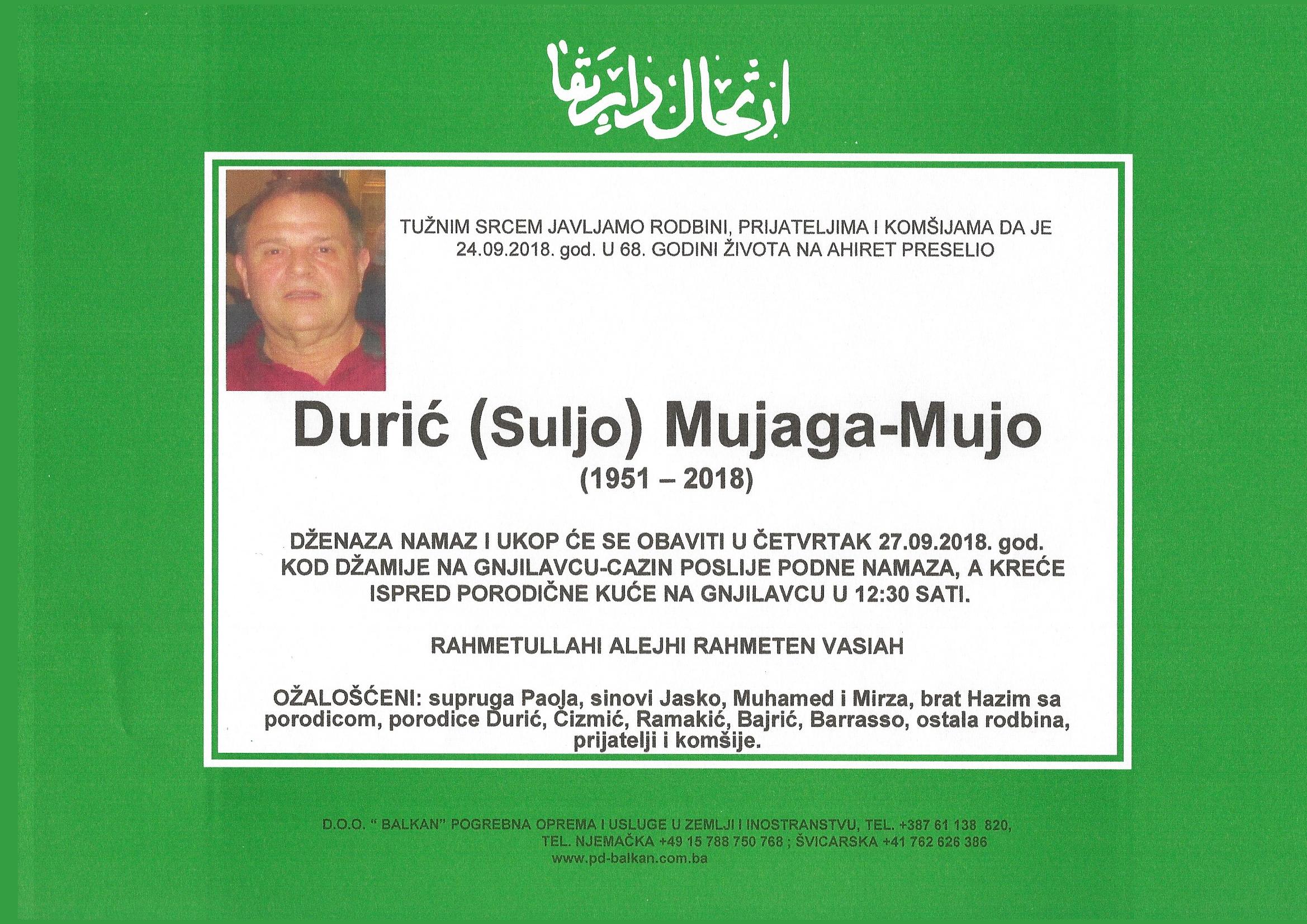 Durić (Suljo) Mujaga - Mujo (1951 2018)