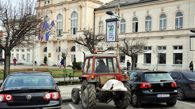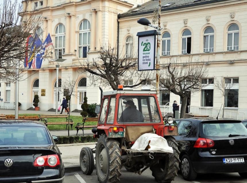 Neobična scena mogla se vidjeti danas ispred zgrade Gradske uprave Bijeljina. Uprkos zabrani za traktore i poljoprivrednu mehanizaciju, vlasnik traktora je svojim prevoznim sredstvom stigao u strogi centar grada.