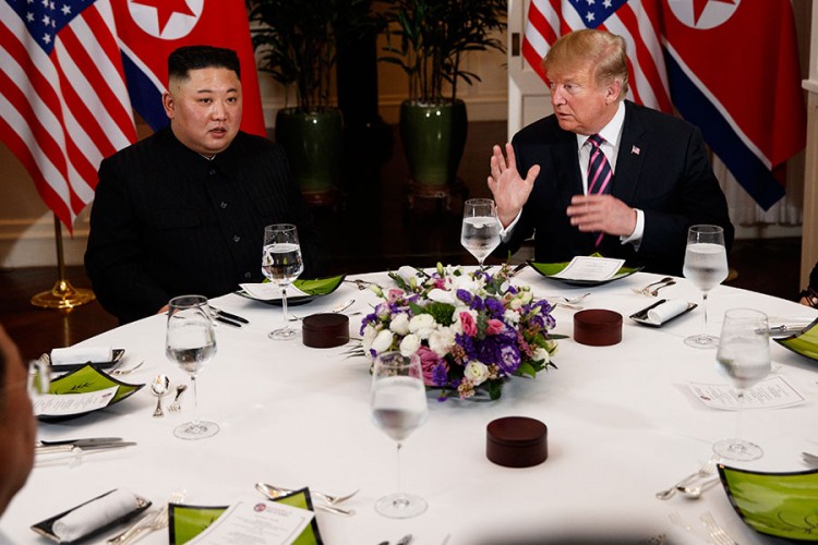 Sjedeći za okruglim stolom sa američkim državnim sekretarom Majkom Pompeom i vršiocem dužnosti šefa kabineta Mikom Malvanijem, Tramp je zamolio fotografe da učine da on i Kim na fotografijama izgledaju dobro.