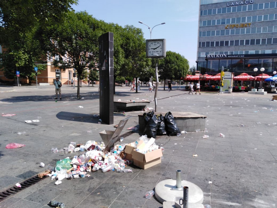 Centralni banjalučki trg osvanuo je jutros zatrpan smećem nakon sinoćnjeg koncerta regionalne folk zvijezde Lepe Brene i finala nagradne igre koju je organizirala Banjalukčka pivara.